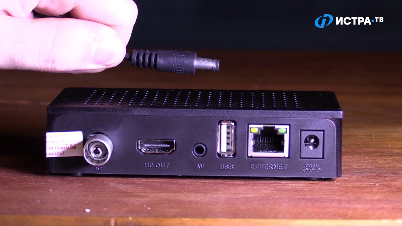 После подключения приставки, необходимо запитать ее, подключив к сети с помощью шнура питания.